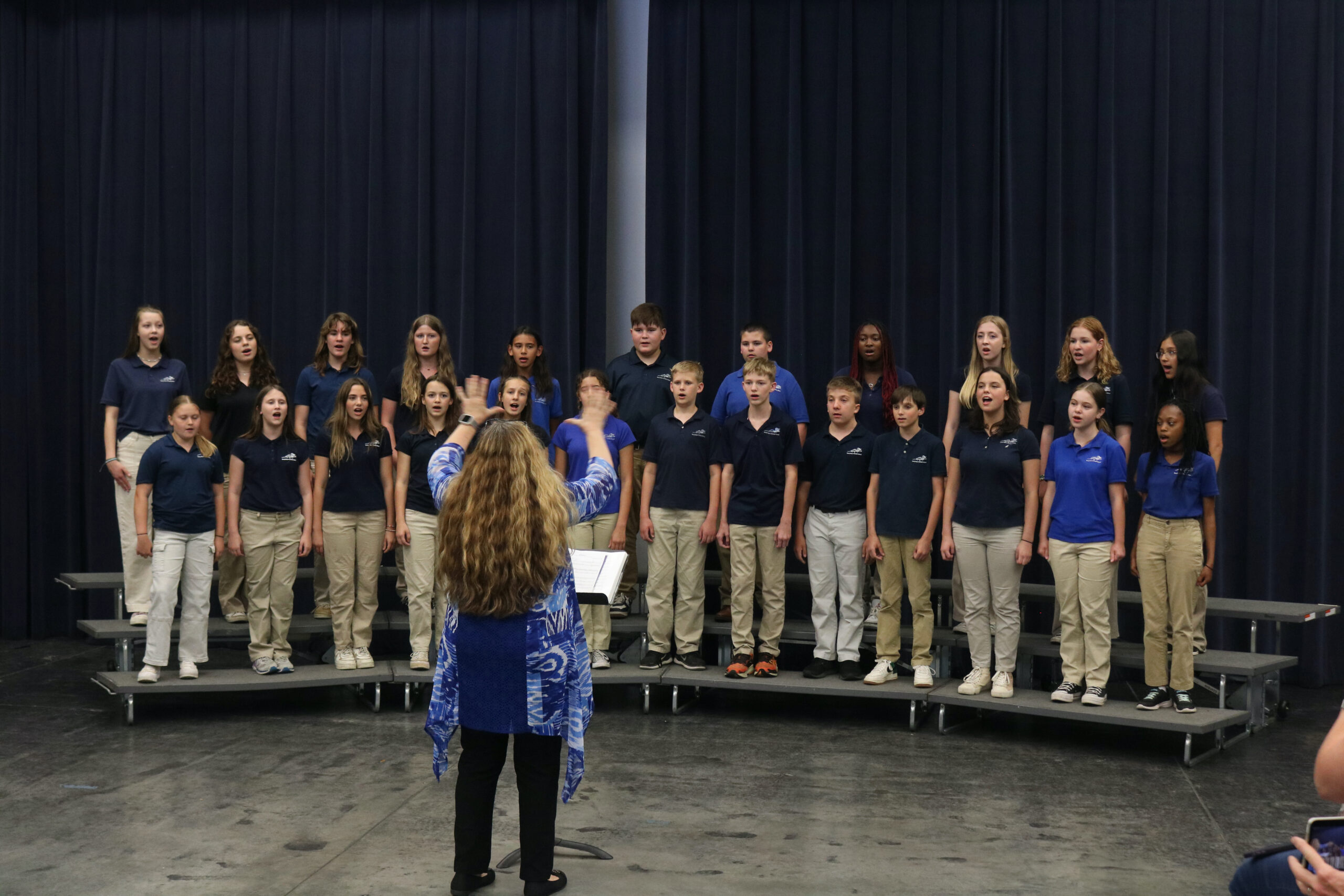 Open to all 5th graders, the RBCS Beginning Choir performs two formal concerts a year, Winter and Spring. The Beginning Choir also competes at the Jr. FACCS Regional Fine Arts Competition in the spring for which they have received consistent excellent and superior ratings and have qualified for state every year.  They also entertain at various local and on-campus functions. In addition to performance opportunities, students also learn fundamental musicianship skills throughout the course.